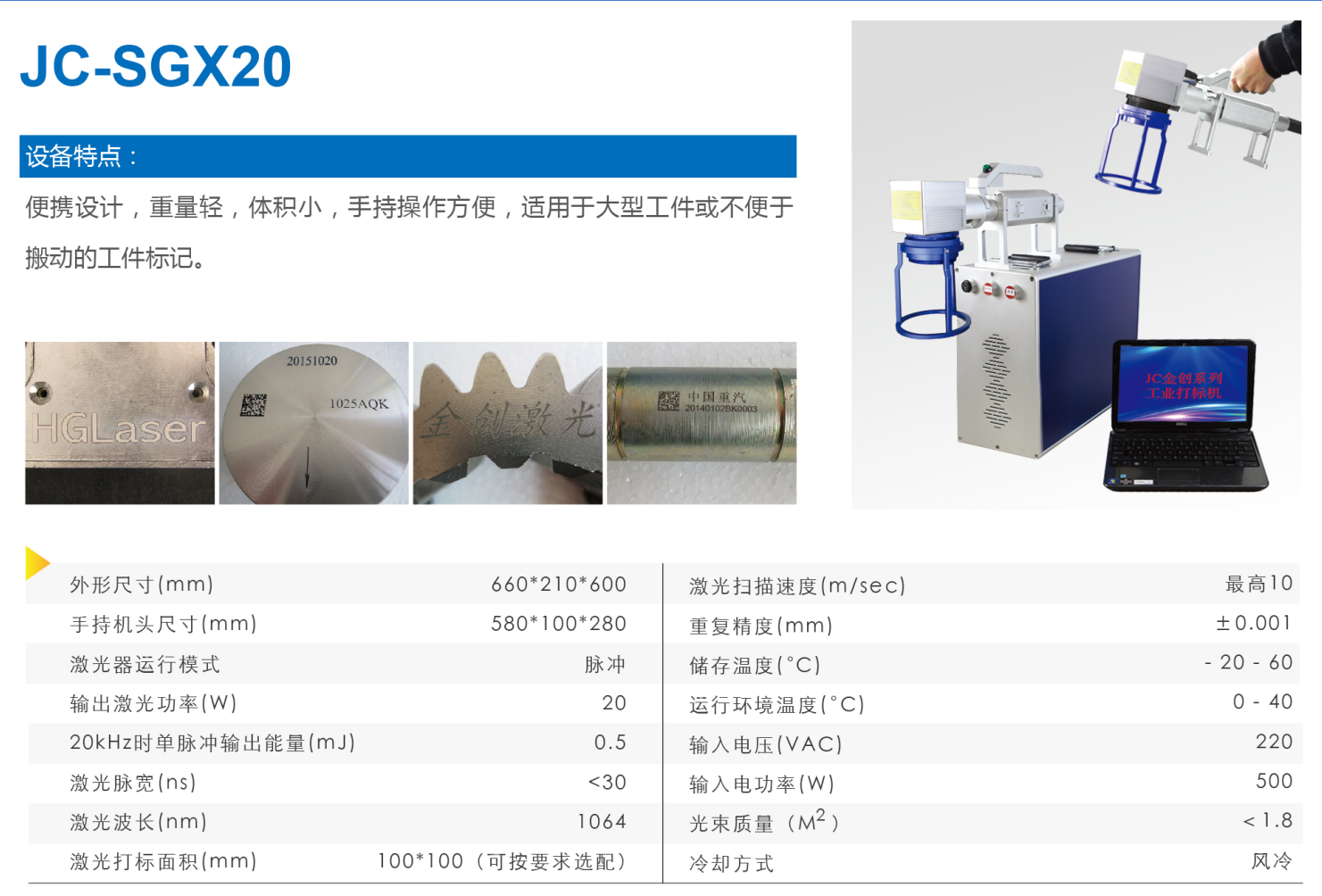 Products > Hand held fiber laser marking machine jc-gx20s > Hand held fiber laser marking machine jc-gx20s